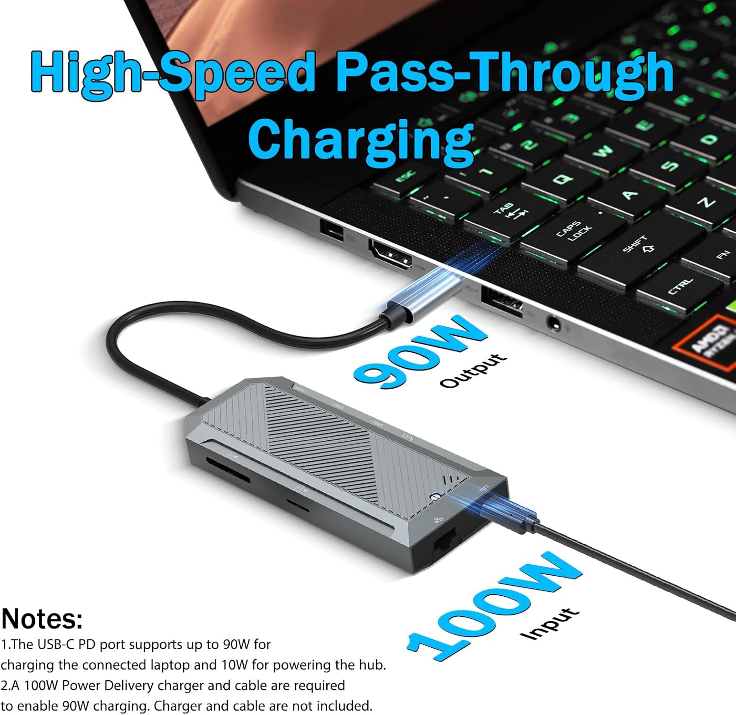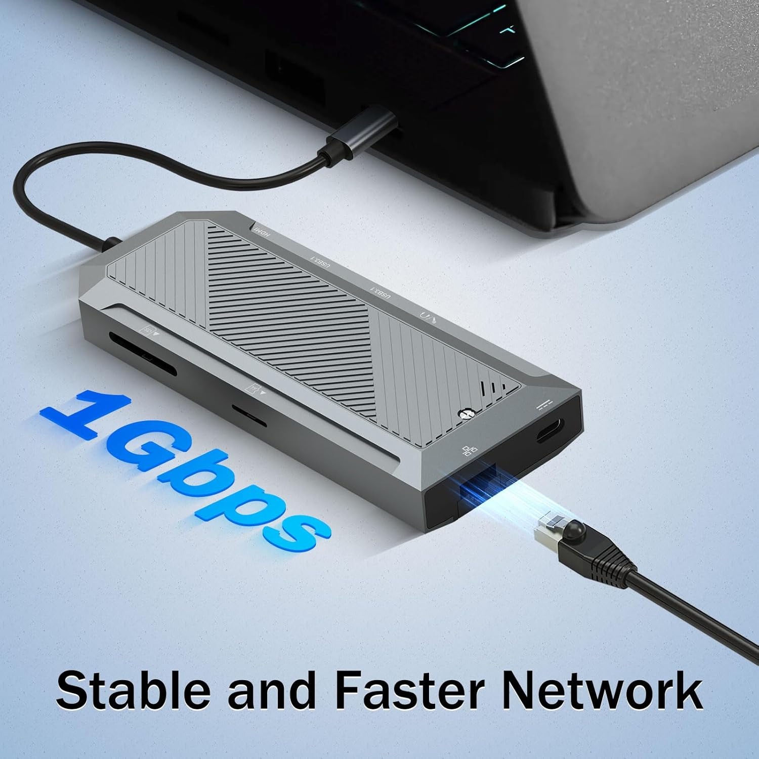 Хъбът също така включва HDMI видео изход, способен да доставя 4K резолюция при 60Hz, осигурявайки плавни и ултра-ясни визуализации за презентации, редактиране на видео или забавление.