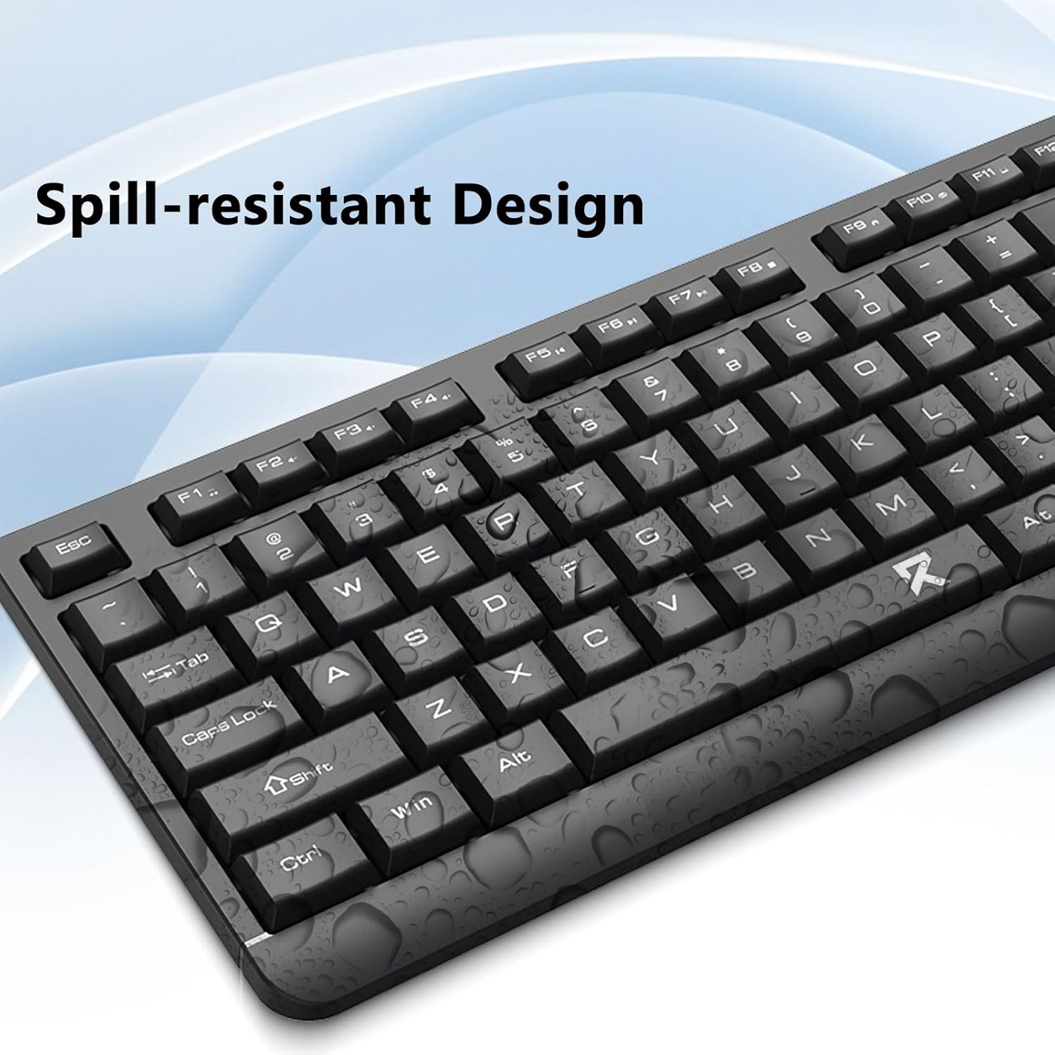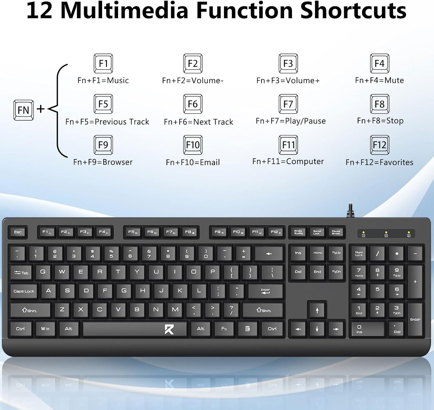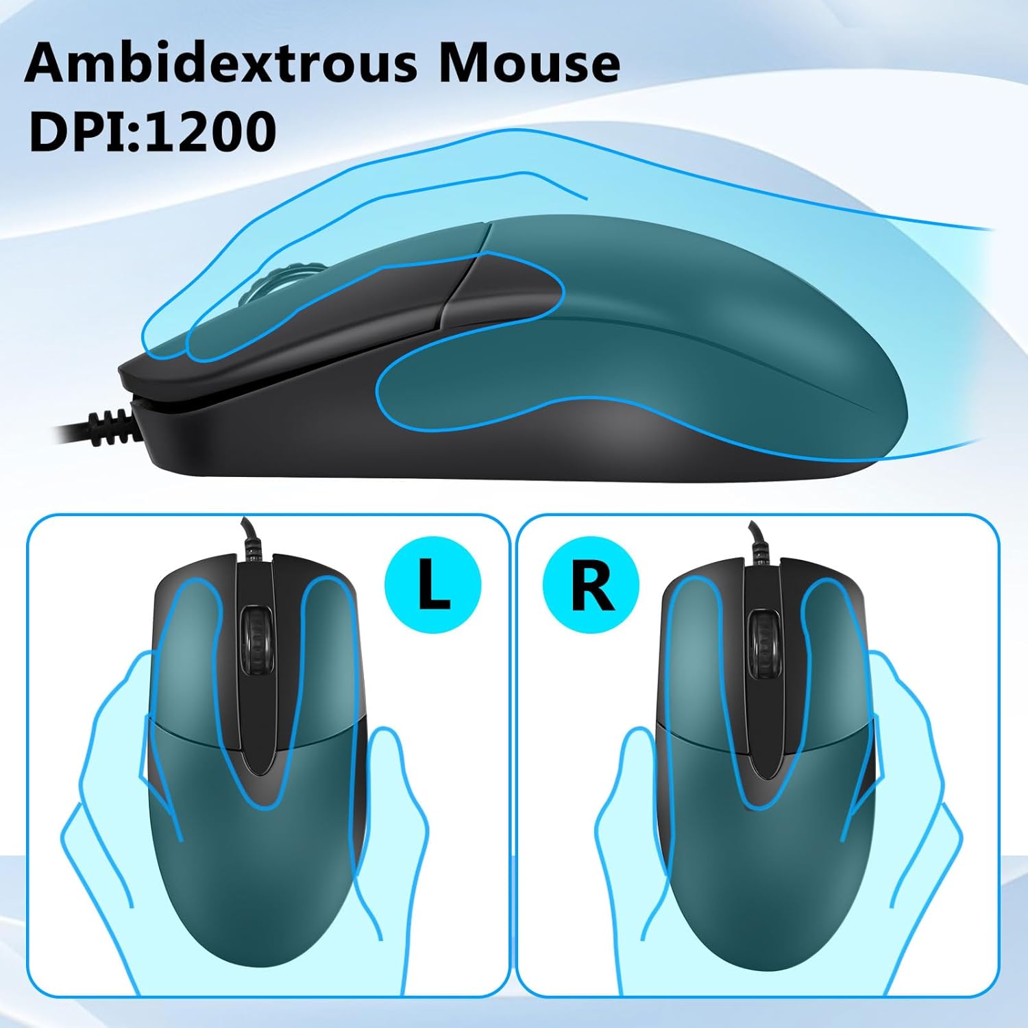 Подредбата на клавиатурата в пълен размер включва цифрова клавиатура, мултимедийни клавиши и удобно разстояние между клавишите. Придружаващата мишка е проектирана за точно проследяване и плавно движение на курсора по различни повърхности.