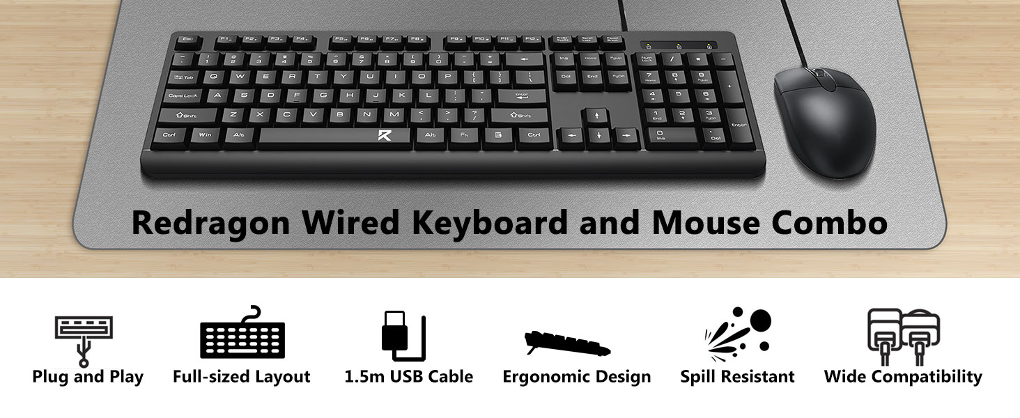 Проектирани за дългосрочна надеждност, клавиатурата и мишката са изработени от издръжливи материали, които могат да издържат на ежедневна употреба. Класическото черно покритие допълва широка гама от компютърни настройки, от офис работни станции до домашни бюра.