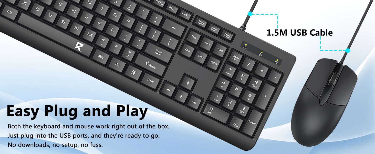Функционалността Plug-and-play позволява на потребителите да свързват клавиатурата и мишката бързо, без да инсталират допълнителен софтуер.
