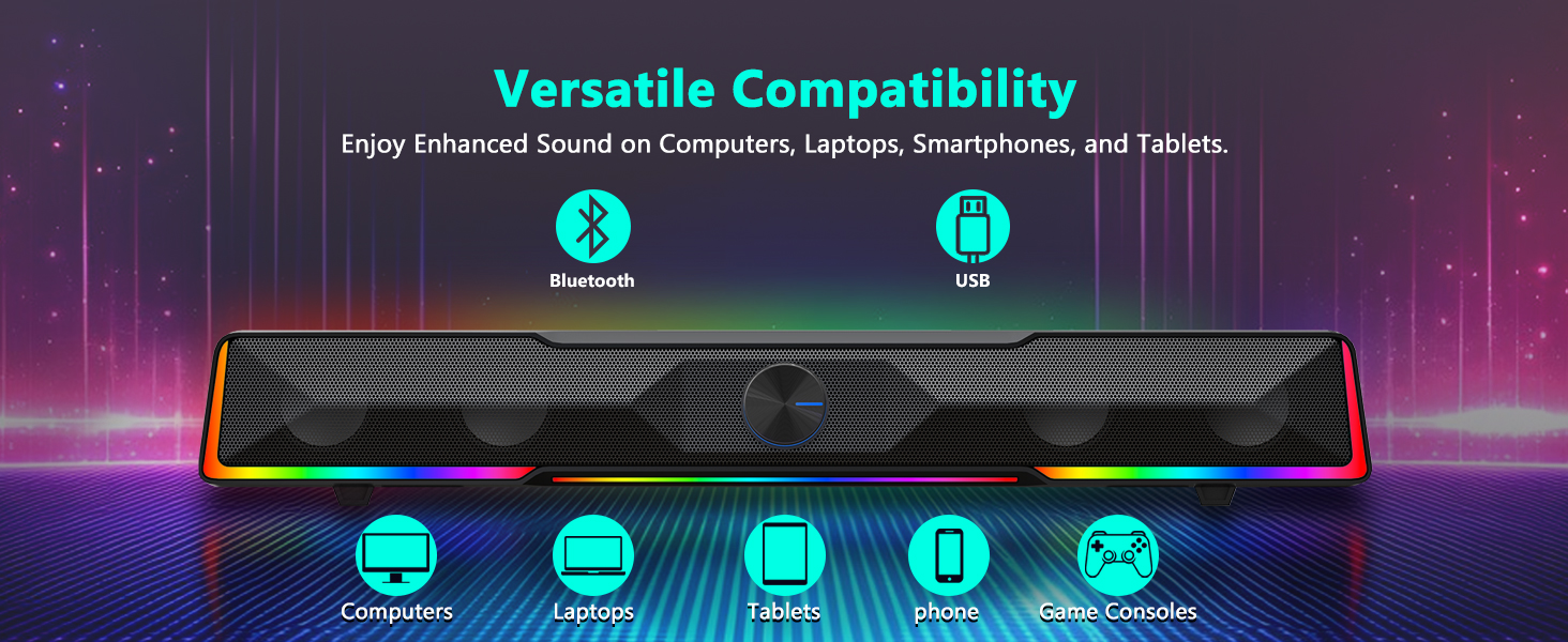 Съвместими устройства Черният компютърен високоговорител с копче за сила на звука GS516 Bluetooth/USB кабелна връзка Soundbar е проектиран да работи с голямо разнообразие от устройства. Съвместимите устройства обикновено включват: