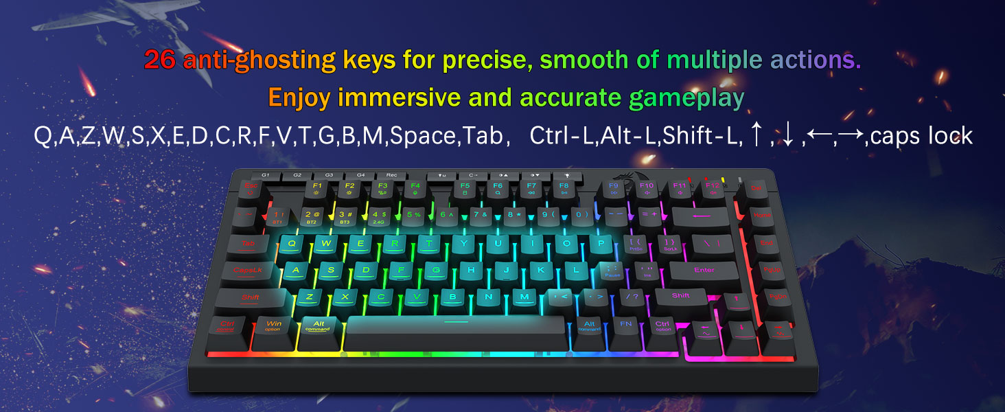 Професионална производителност при игри и специални контроли с подсветка- Снабден с анти-призрачни клавиши (клавиши с долна черта), които позволяват на 26 клавиша да работят едновременно за бързи и точни отговори на играта, както сте планирали. Бутони за бърз достъп за яркост, режим на осветление и режим на игра за бързо регулиране на яркостта, профили на осветление и активиране на режим на игра с едно натискане на бутон.