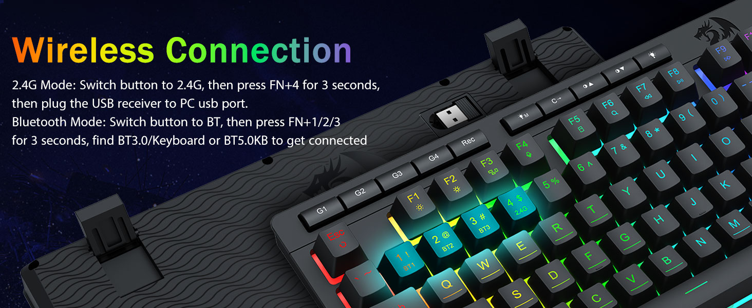 Безпроблемно превключвайте устройства чрез клавишни комбинации или страничен бутон—идеално за хибридни настройки за работа/игри. Останете захранвани седмици с батерията от 4000 mAh (30+ дни в режим на готовност, 50 часа RGB време на работа).