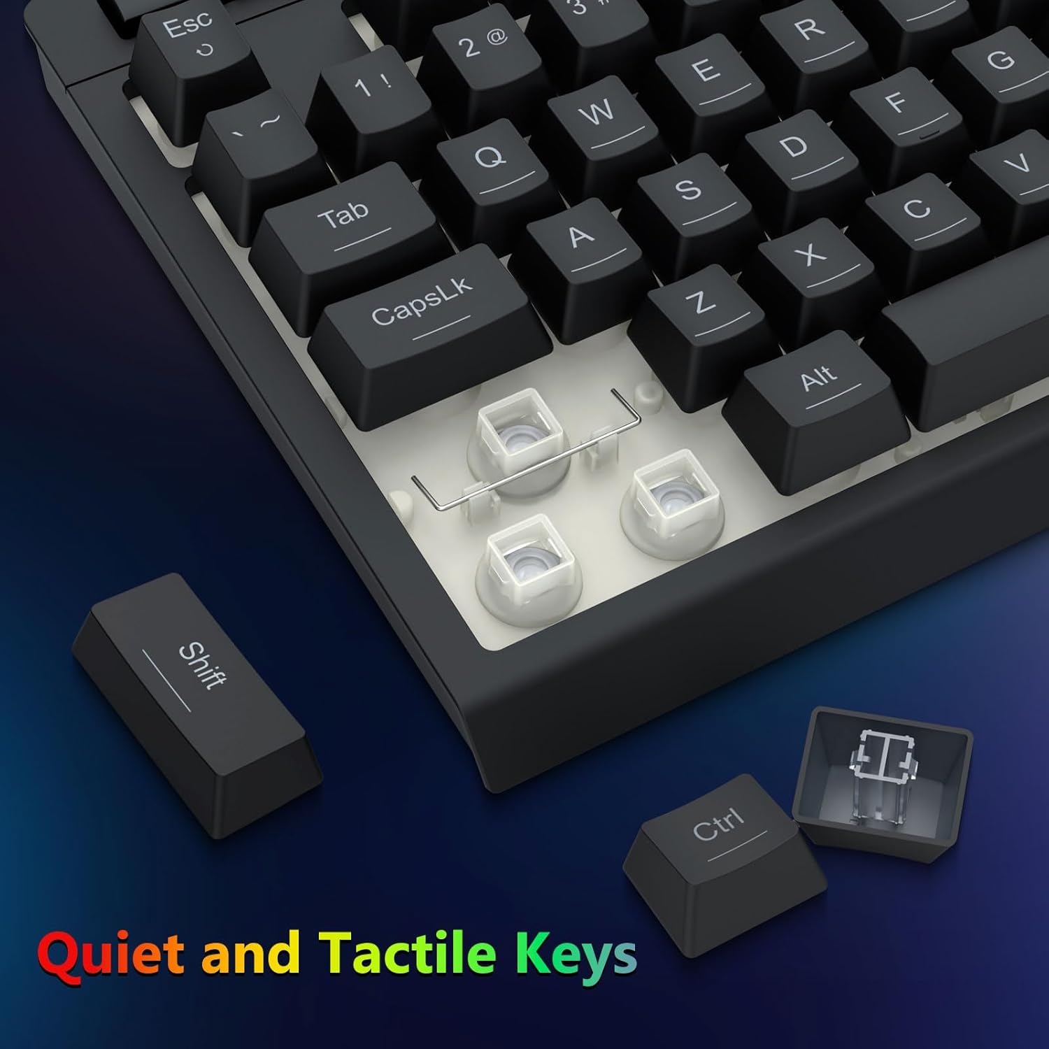 【Удобна игра】Сгъваемата стойка на клавиатурата, щадящото кожата покритие и плаващите клавишни капачки повишават комфорта при писане. 26 Keys Anti-ghosting гарантира, че всеки бутон може да бъде задействан. Ключът WIN може да бъде деактивиран за игри. Тази клавиатура и мишка са предназначени да осигурят ефективно игрово изживяване, като същевременно гарантират максимален комфорт