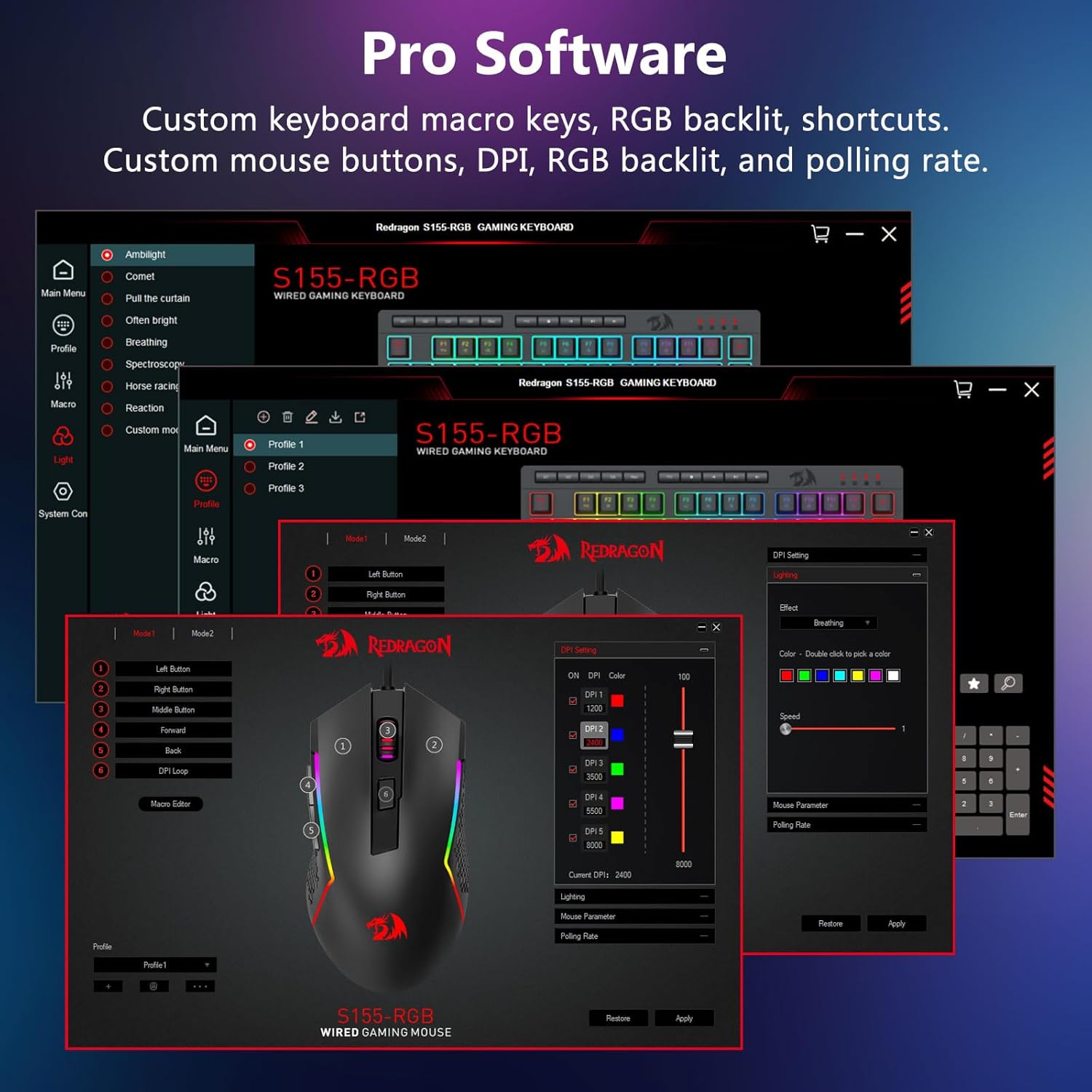 Можете да регулирате DPI от 1200 до 8000 чрез бутона DPI или от 100 до 8000 чрез софтуерния драйвер, за да посрещнете лесно различните си нужди при игри или работа. Общо 7 бутона, от които 6 са програмируеми. Високопрецизният сензор осигурява прецизна точност, докато микропревключвателите Gaming Grade гарантират дълготрайност, по-голяма издръжливост и изключителна бързина на реакция, което ви дава още по-голямо предимство пред конкуренцията. (Софтуерът също поддържа регулиране на скоростта на запитване на мишката до 1000Hz)