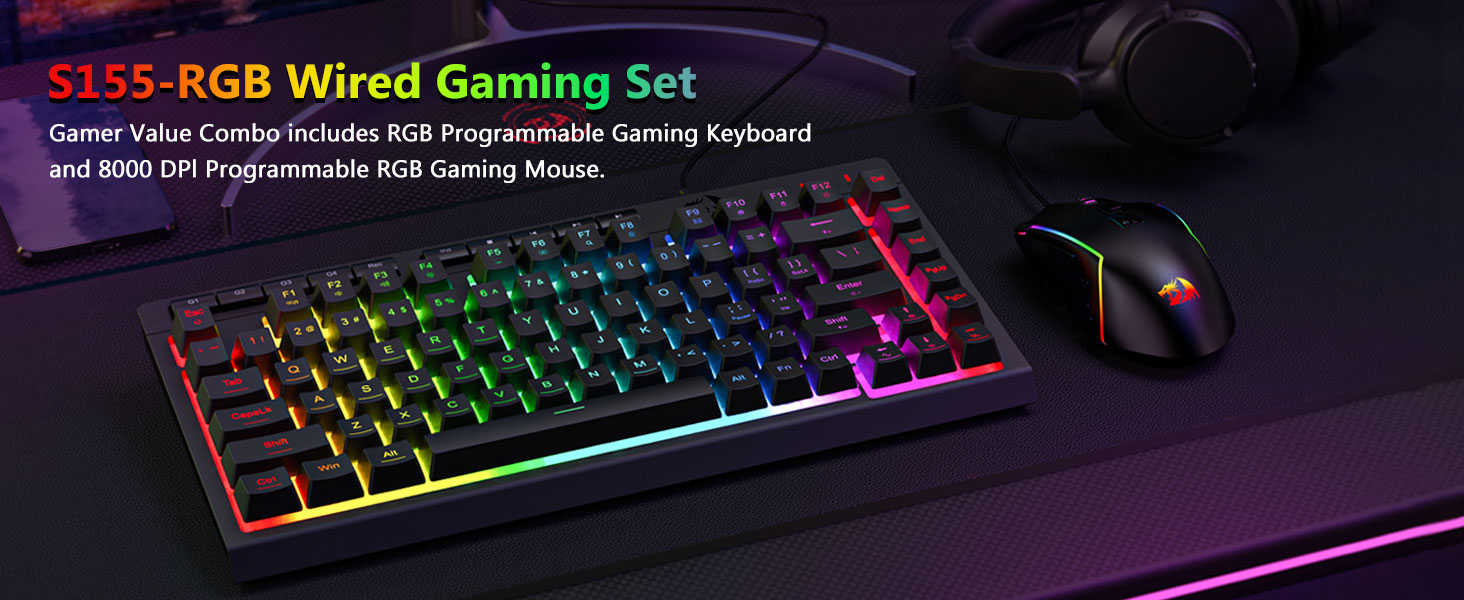 Горещи маркери: Черна S155 RGB подсветка с кабелна клавиатура и мишка за игри, Китай, производител, доставчик, фабрика