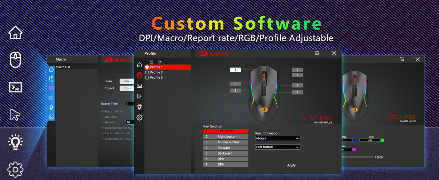Максимално 12800 DPI Регулируема- Снабден с 5 вградени нива на DPI, които позволяват движенията на мишката ви да бъдат регистрирани на всяко точно място. 5 нива на DPI са безплатни за Направи си сам със софтуер, което позволява на геймърите да превключват бързо в играта.