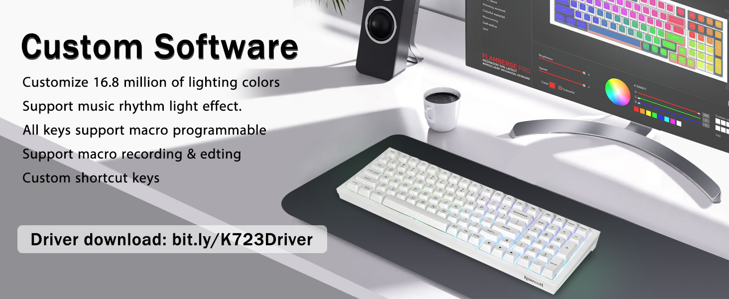 Механична игрална клавиатура:K723 е първокласна механична клавиатура както за работа, така и за игра. С 16 RGB светлинен ефект за добавяне на страхотна атмосфера към стаята за игри. Клавишите поддържат макро персонализиране, което позволява запис и редактиране на макроси, персонализиране на функцията на клавишите и 16,8 милиона светлинни цвята и поддържа готини светлинни ефекти на музикален ритъм с драйвер. Клавиатурата може да реагира на няколко натискания на клавиши едновременно, което е полезно при много вълнуващи игри в реално време.