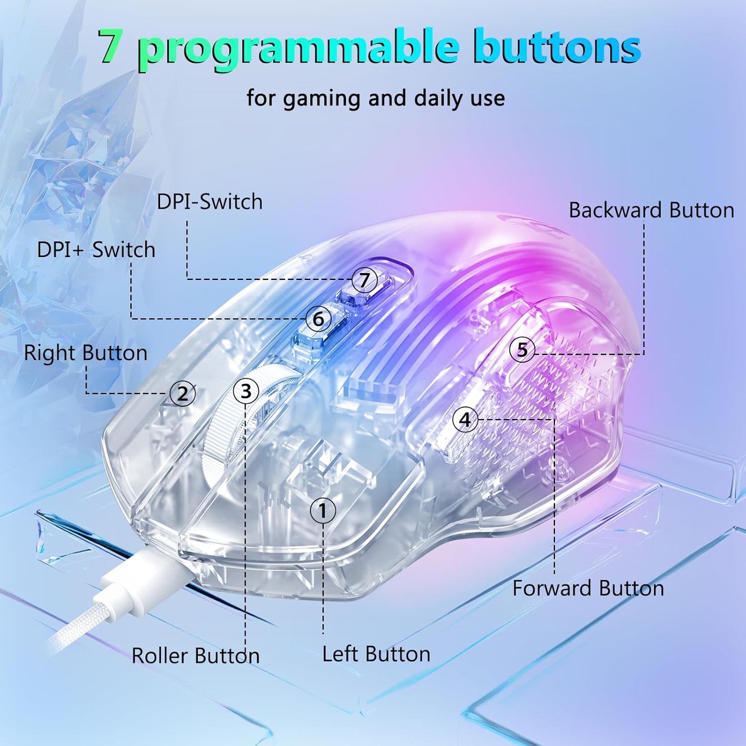 CHUANGQUAN Бяла M695CT 24 000 DPI 8 RGB LED подсветка в режим на кабелна игрална мишка осигурява ултра-прецизно проследяване, плавен контрол и динамично осветление, създадена за геймъри, които изискват скорост, точност и стил.