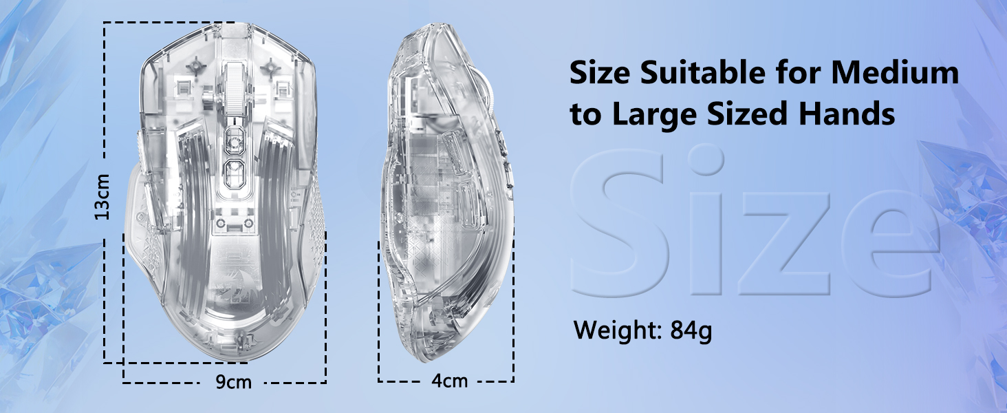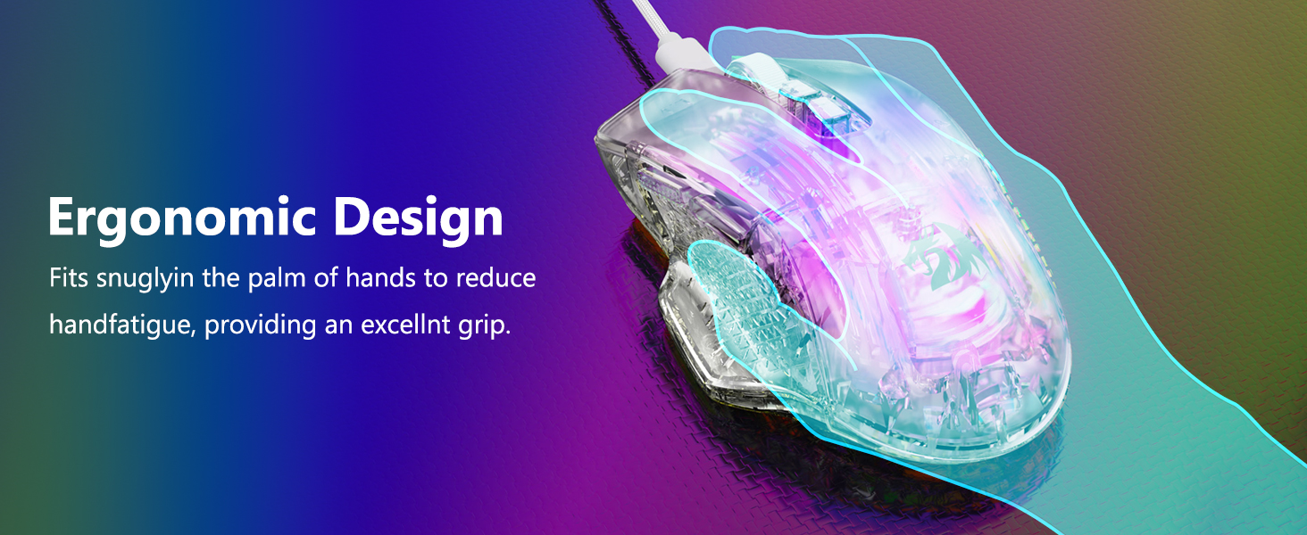 Мишката е оформена така, че да пасва естествено в ръката, като поддържа продължителна употреба без прекомерно напрежение. Структурата му позволява удобни стилове на захващане, включително длани, нокти и пръсти.