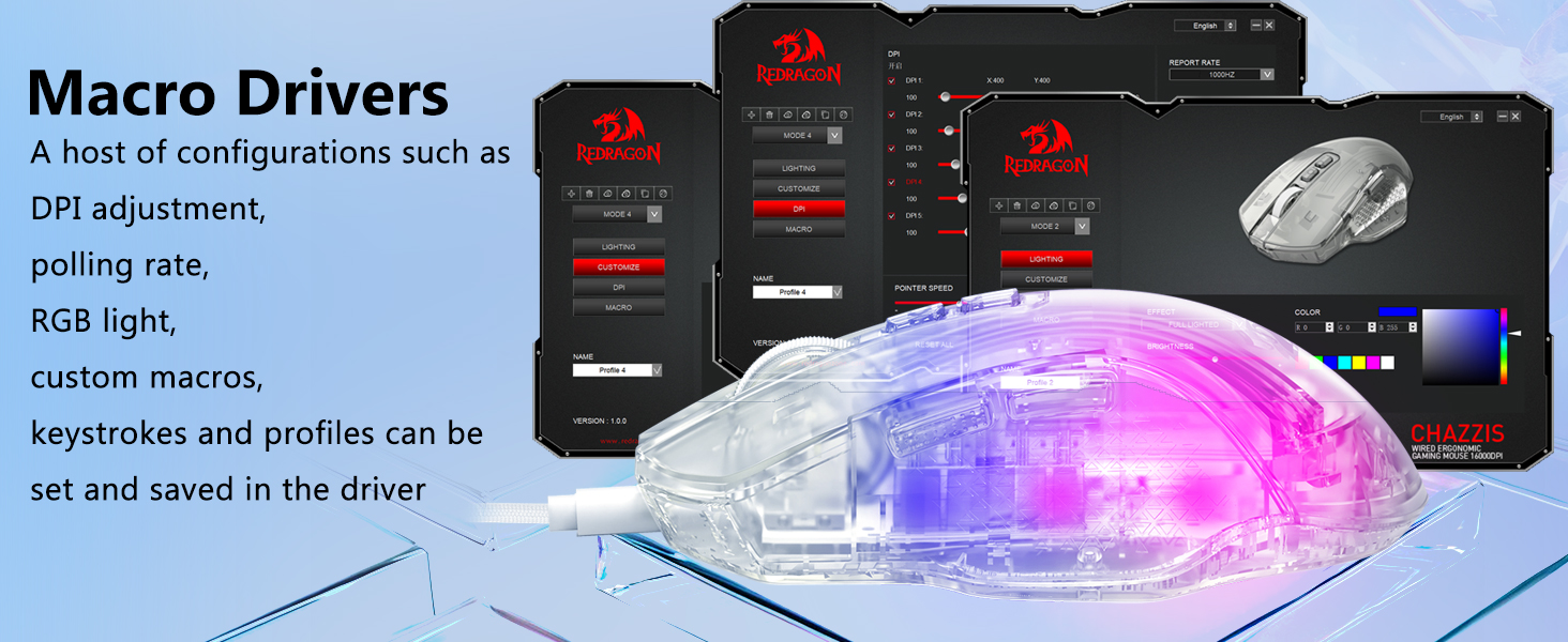 Регулируемите нива на DPI позволяват персонализиране въз основа на предпочитанията на потребителя, което го прави подходящ за различни игрови жанрове и работни процеси.