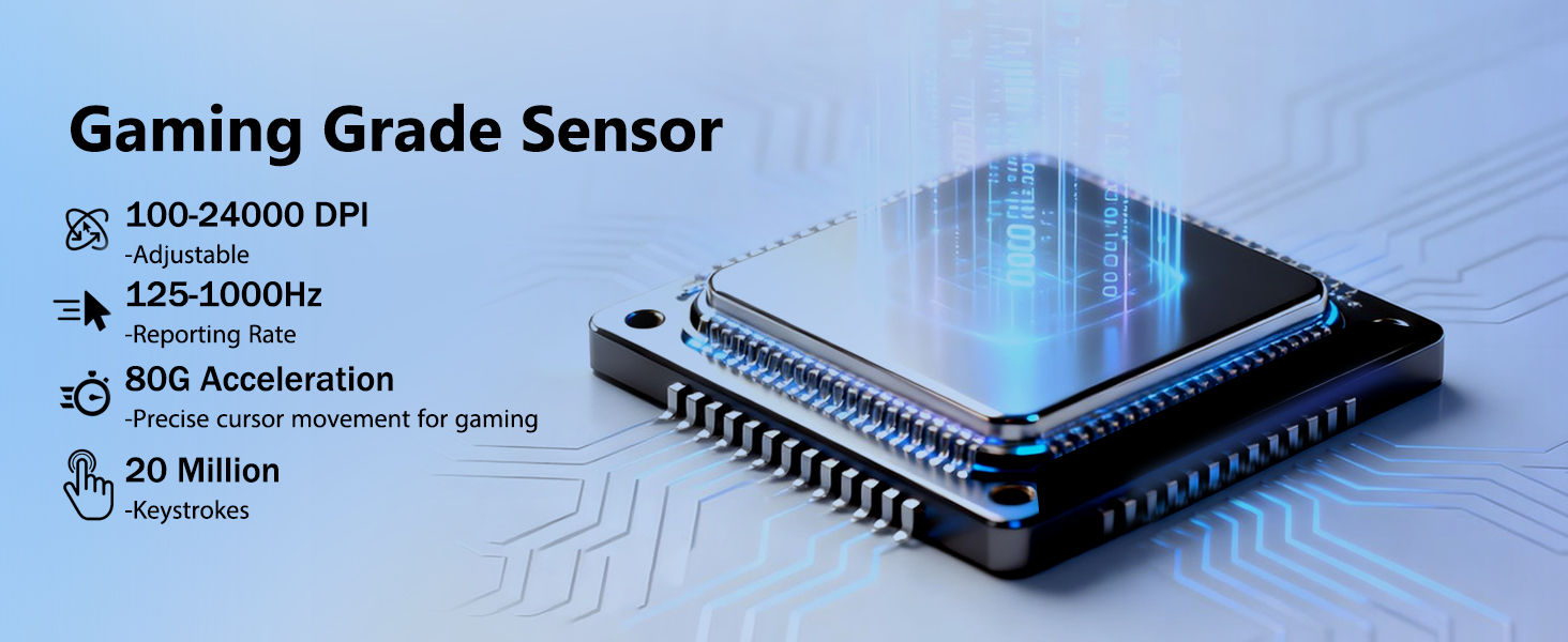 Мишката е оборудвана с усъвършенстван оптичен сензор, способен да достигне до 24 000 DPI. Това позволява на потребителите да регулират чувствителността според различни сценарии, от прецизно насочване в игрите до бързо движение на курсора през големи екрани.