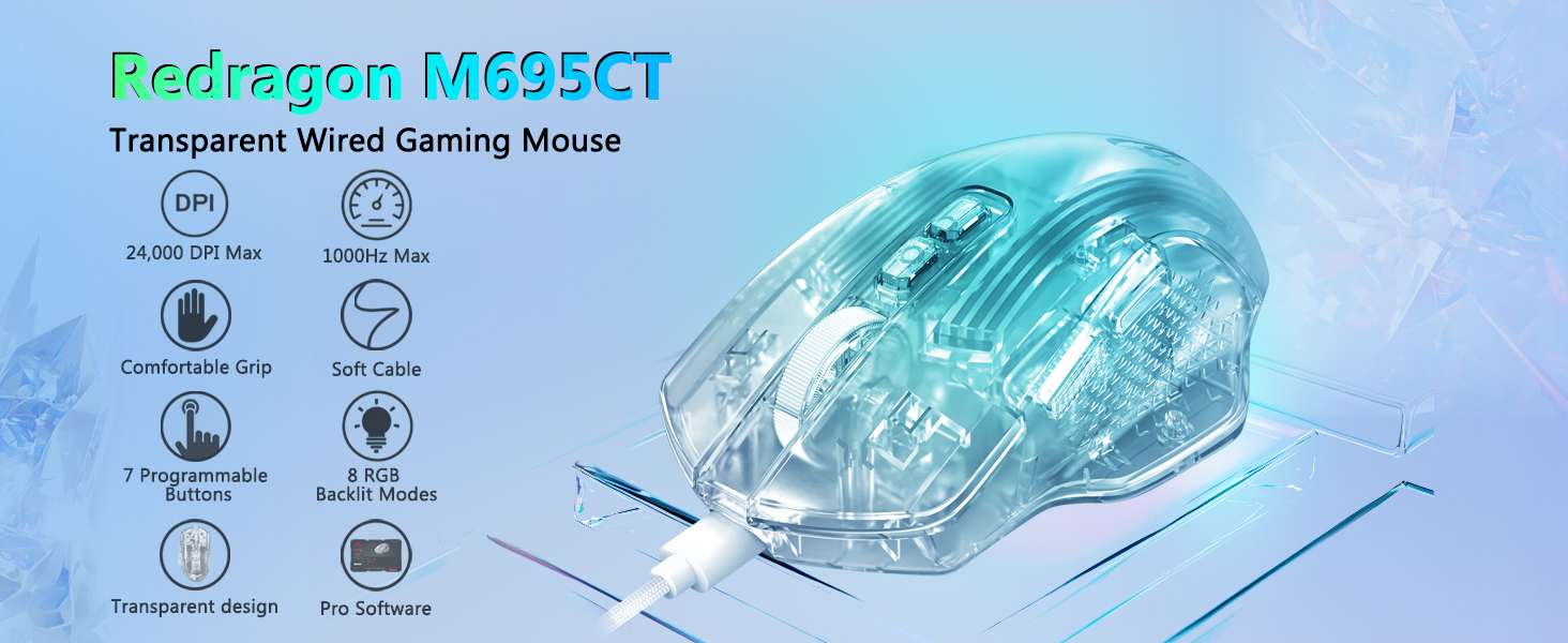 С надеждна кабелна връзка и набор от практични функции, бялата мишка M695CT с 24 000 DPI и 8 RGB LED задно осветяване в режим на кабелна геймърска мишка е надежден избор за потребители, които търсят постоянен контрол и ефективна производителност в модерни компютърни среди.