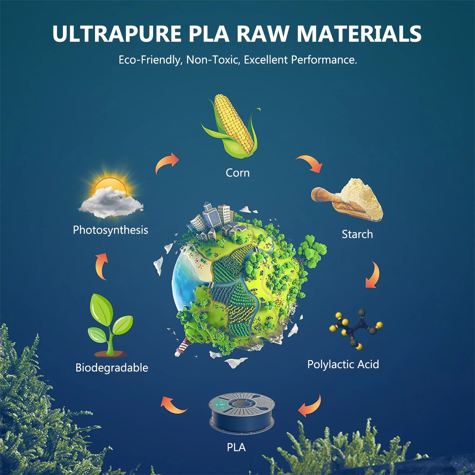 PLA се извлича от възобновяеми ресурси и се счита за биоразградим при условия на промишлено компостиране. Това го прави по-екологичен вариант в сравнение с пластмасите на петролна основа.