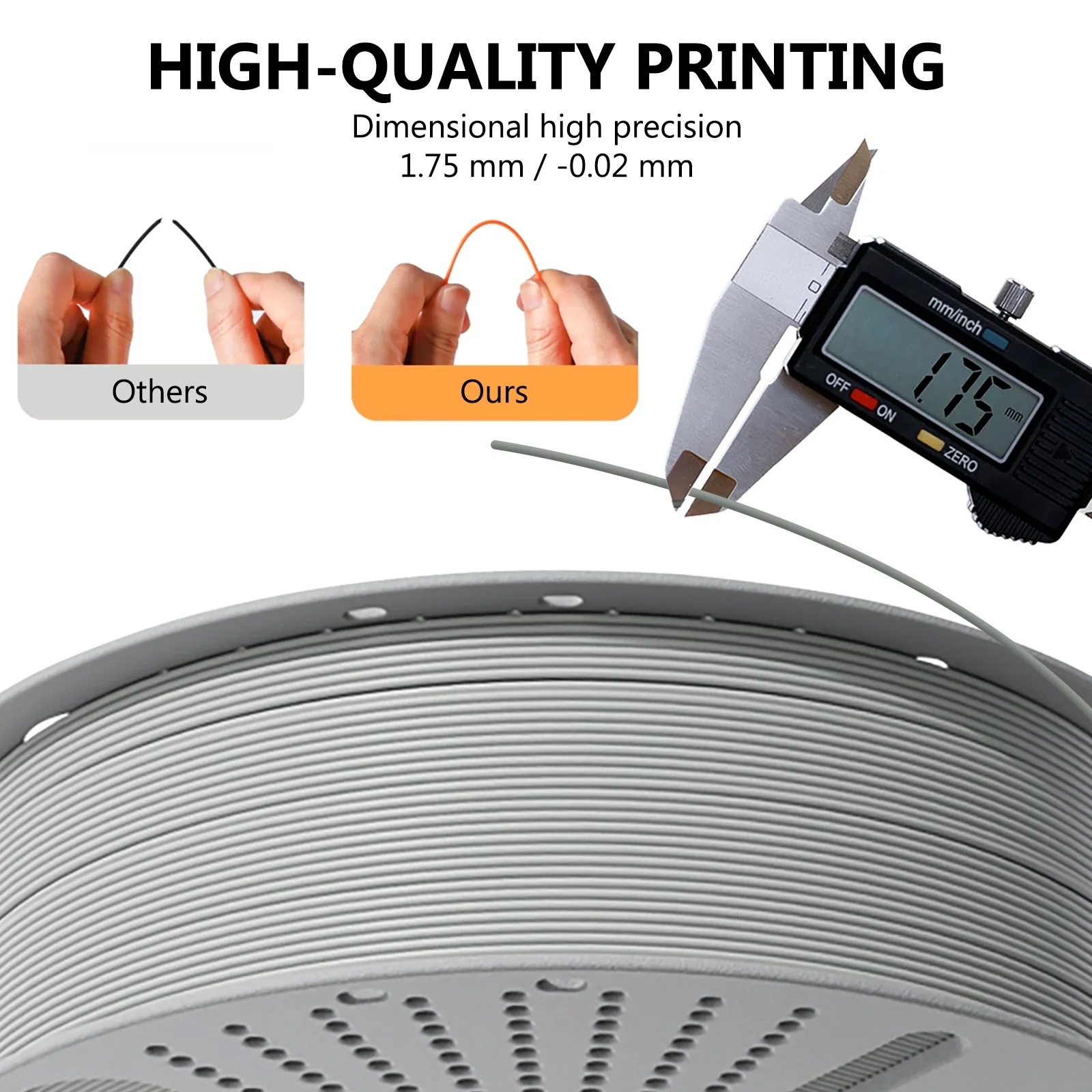 Прецизното производство осигурява еднакъв диаметър на нишката по цялата макара. Тази консистенция позволява на нишката да се подава гладко през екструдера без запушване или неравномерно екструдиране.